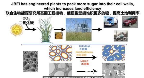 我现在管理着加州的一个科研机构,叫 “联合生物能源研究所”(JBEI),其使命是将木质纤维素生物质转化为生物燃料和生物制品。我们在 2007 年成立,2012 年续约,2017 年正式开始,我们提供科学依据,将木质纤维素生物质转化为生物燃料和生物制品,换提供再生化学品,从而实现生物经济在美国及全全球的繁荣发展,这些年我们完成的是让植物积累更多的纤维素和半纤维素,你们可以看到这里有非工程植物和工程植物,后者细胞壁更厚,含有更多的纤维素 / 糖来转化成生物燃料和生物制品,我们还研发高效工艺,可以提取纤维素并将糖类转化为生物燃料。