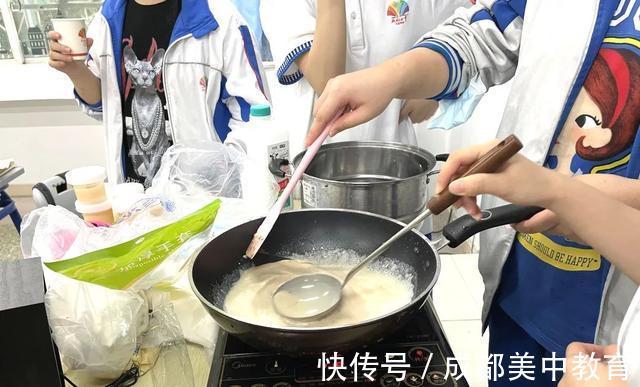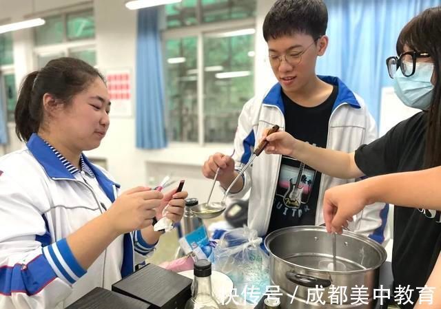 在食品科学课上,教学老师会在课堂上采用学生小组合作的形式,动手参与课堂实验。